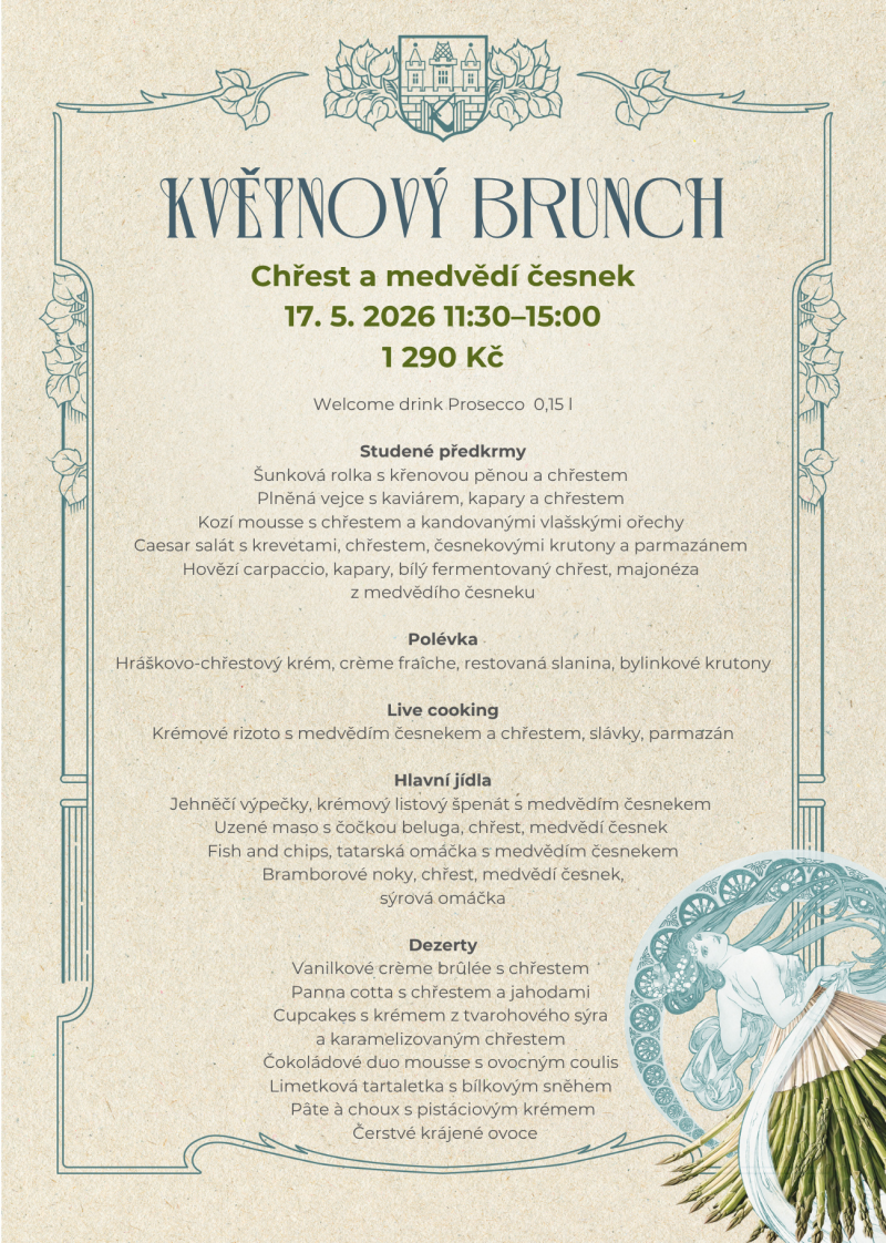 Uvedená cena je za Welcome drink a pohoštění. Nápoje nejdou zahrnuty v ceně Brunche.