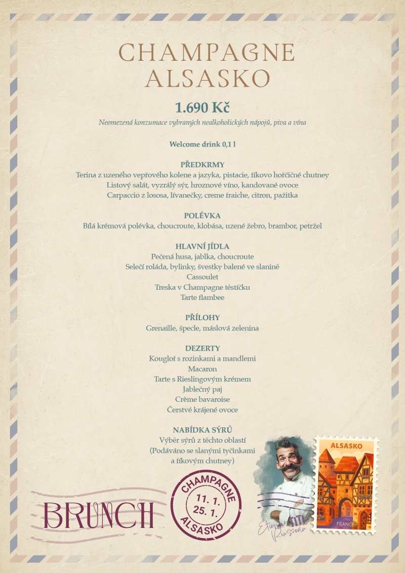 Brunch formou bufetu nebo servírovaného degustačního menu dle obsazenosti